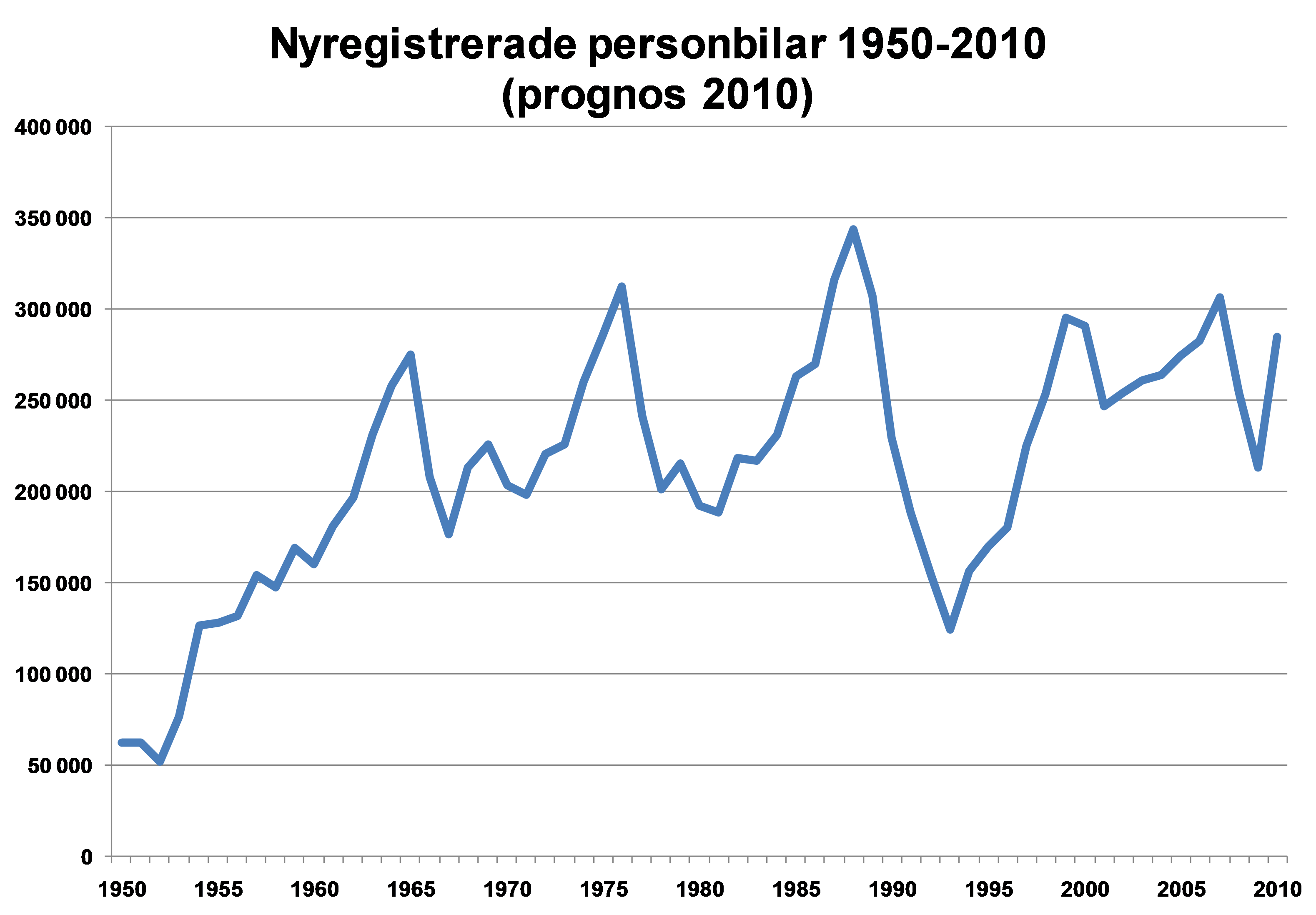 Nyregistreringarna av både personbilar och lastbilar sjönk kraftigt under 2009 i samband med finanskrisen, skriver BIL Swedens årsbok Bilismen i Sverige 2010. Återhämtningen efter finanskrisen har gått snabbare än förväntat och prognosen för 2010 är 285 000 nyregistrerade personbilar och 39 000 lätta lastbilar, en uppgång med 34 procent respektive 42 procent jämfört med utfallet för 2009. Infrias prognosen för nya personbilar under 2010 blir det den största ökningen någonsin under ett år räknat i antal bilar.