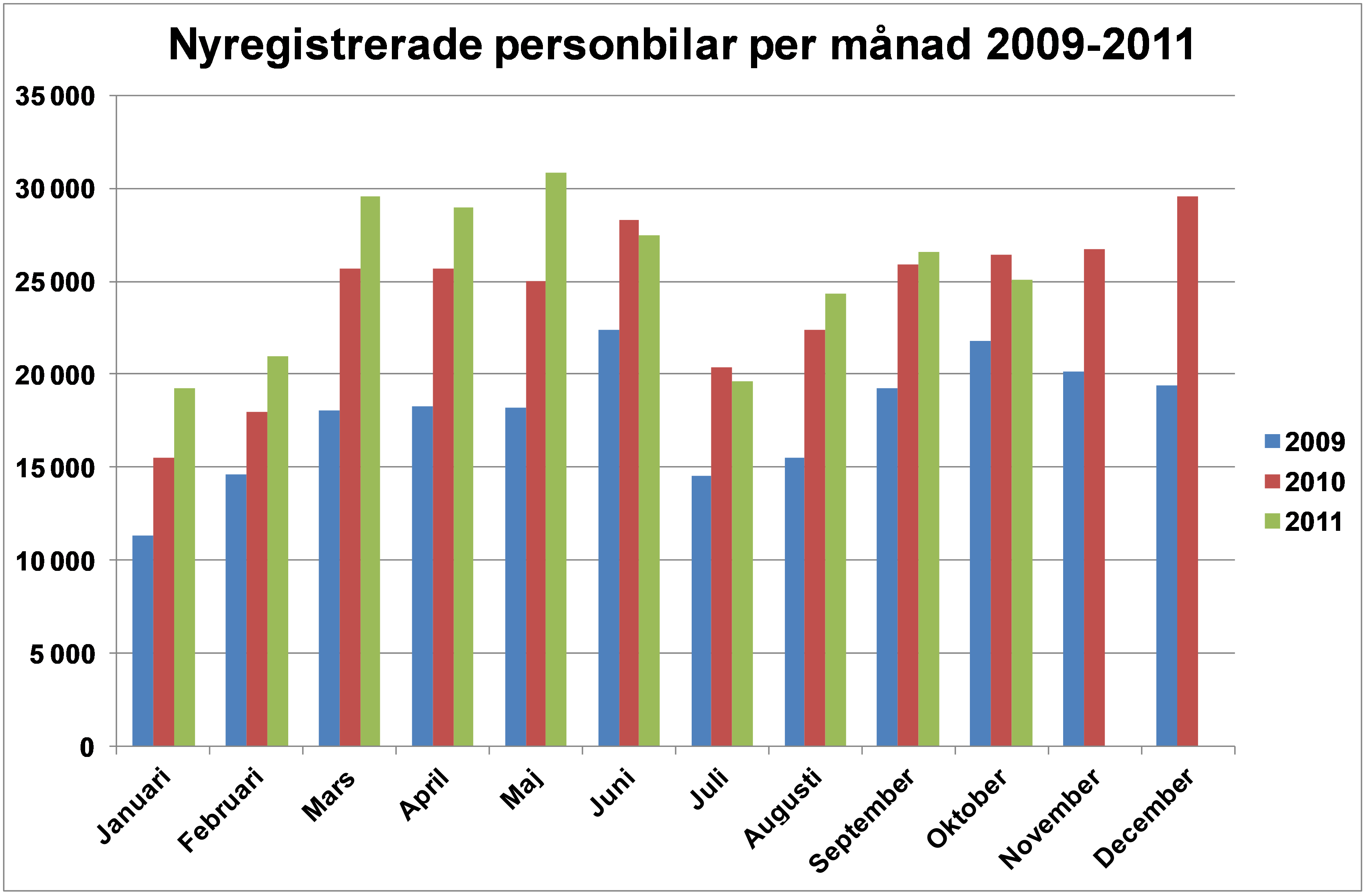 Under oktober registrerades 25 052 nya personbilar, vilket är en minskning med 5,2 % jämfört med samma månad förra året. Hittills i år, januari-oktober, har registreringarna ökat med 8,4%. Lastbils-registreringarna totalt ökade med 22,6 % under oktober till 4 731. Hittills i år har lastbilsregistreringarna ökat med 24,2 %. Lätta lastbilar upp till 3,5 ton ökade i oktober med 23,6 % och tunga lastbilar över 16 ton ökade med 10,3%. Hittills i år har lätta lastbilar ökat med 24,1 % och tunga lastbilar har ökat med 27,1 %.