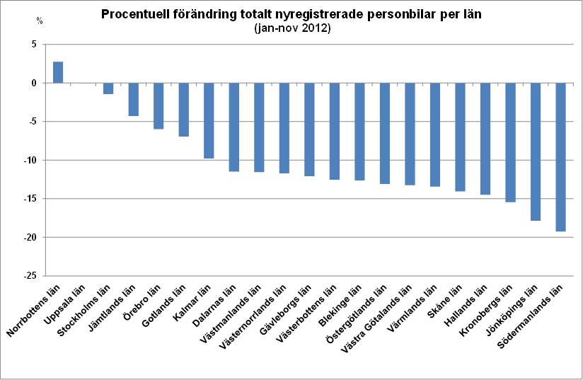BIL Swedens läns- och kommunfördelade nyregistreringsstatistik för jan-nov visar följande: