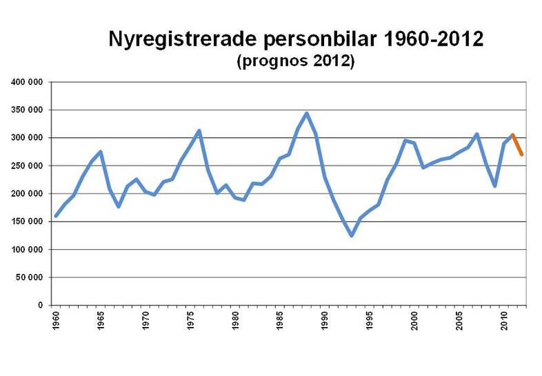 • Prognoserna för 2012 om 270 000 nya personbilar och 41 000 lätta lastbilar ligger fast. Under 2011 nyregistrerades 305 000 personbilar och 46 000 lätta lastbilar.