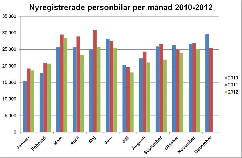Under november registrerades 25 052 nya personbilar, vilket är en minskning med 6,9 % jämfört med samma månad förra året. Hittills i år, januari-november, har registreringarna minskat med 9,6 %. Lastbilsregistreringarna totalt minskade med 14,2 % under november till 3 972. Hittills i år har lastbils-registreringarna minskat med 12,6 %. Lätta lastbilar upp till 3,5 ton minskade i november med 15,6 % och tunga lastbilar över 16 ton minskade med 4,0 %. Hittills i år har lätta lastbilar minskat med 13,6 % och tunga lastbilar har minskat med 4,1 %.