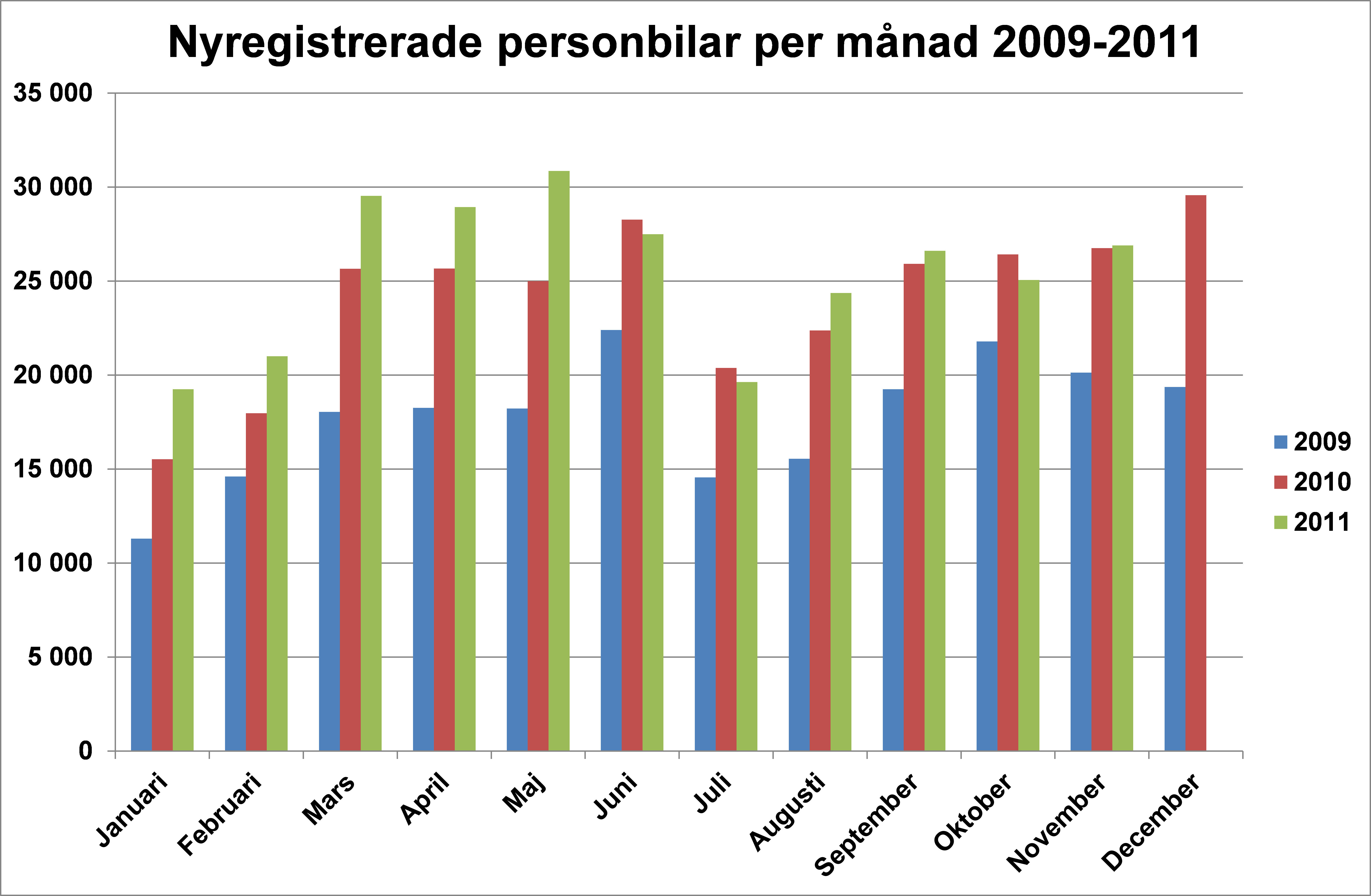 Under november registrerades 26 894 nya personbilar, vilket är en ökning med 0,5 % jämfört med samma månad förra året. Hittills i år, januari-november, har registreringarna ökat med 7,6%. Lastbils-registreringarna totalt ökade med 15,9 % under november till 4 631. Hittills i år har lastbilsregistreringarna ökat med 23,3 %. Lätta lastbilar upp till 3,5 ton ökade i november med 15,6 % och tunga lastbilar över 16 ton ökade med 17,6%. Hittills i år har lätta lastbilar ökat med 23,2 % och tunga lastbilar har ökat med 26,1 %.