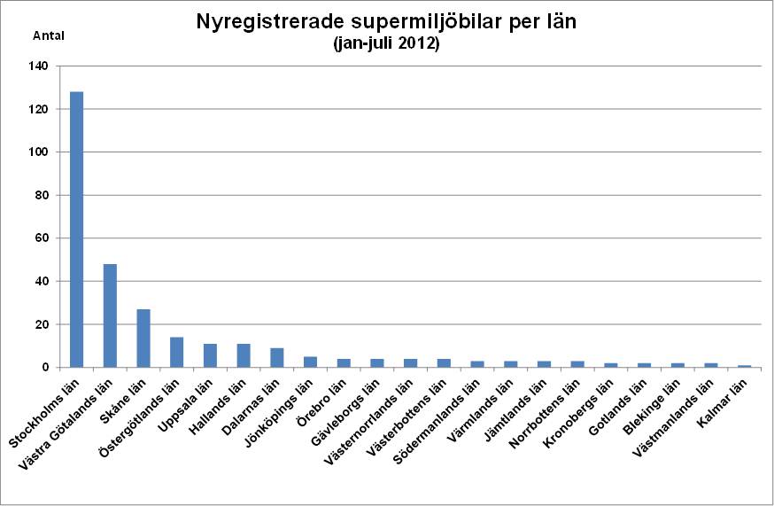 Miljöbilsregistreringar per län - nyregistreringar jan-juli 2012