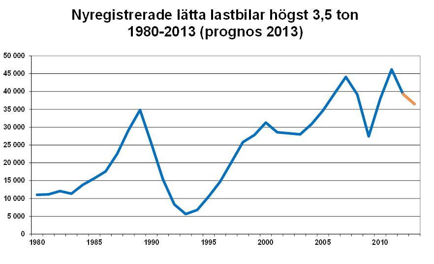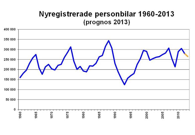 • BIL Swedens prognos för 2013 om 265 000 nya personbilar och 36 500 lätta lastbilar ligger fast. Under 2012 nyregistrerades 280 000 personbilar och 39 000 lätta lastbilar.