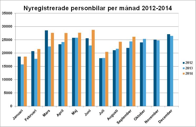 Under september registrerades 26 142 nya personbilar, vilket är en ökning med 7,2 % jämfört med samma månad förra året. Hittills i år, januari-september har registreringarna ökat med 15,3 %. Lastbilsregistreringarna totalt ökade med 17,3 % under september till 4 556. Hittills i år har lastbilsregistreringarna ökat med 12,4%. Lätta lastbilar upp till 3,5 ton ökade i september med 17,1 % och tunga lastbilar över 16 ton ökade med 21,0 %. Hittills i år har lätta lastbilar ökat med 12,1 % och tunga lastbilar har ökat med 17,7 %.