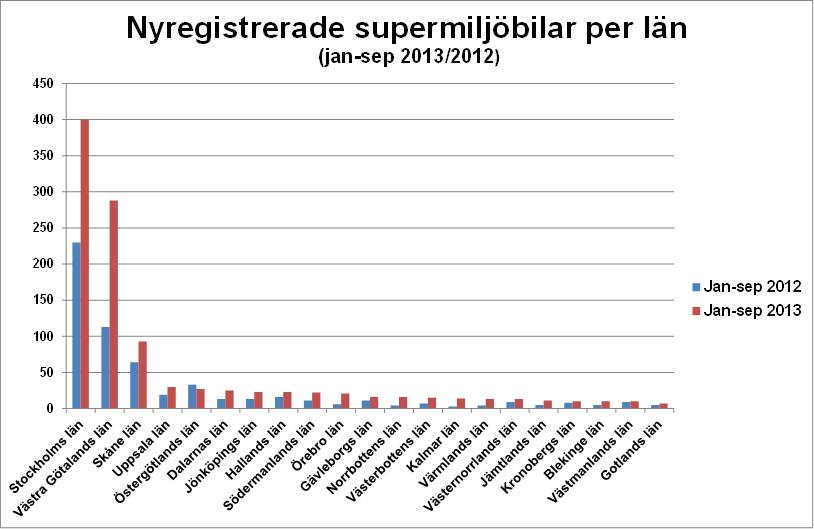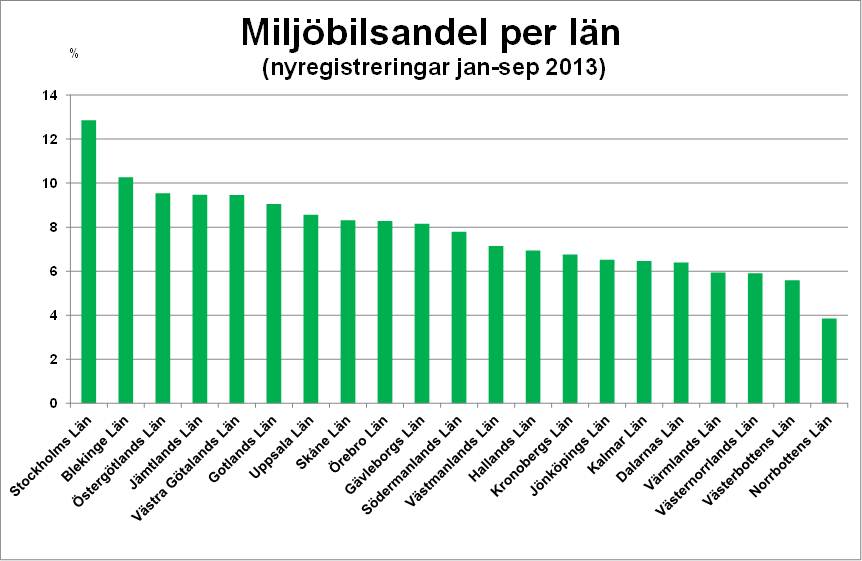 BIL Swedens läns- och kommunfördelade nyregistreringsstatistik för jan-sep 2013 visar följande: