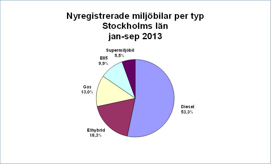 - Stockholms län har den högsta andelen miljöbilar av nybilsregistreringarna. Av de miljöbilar som registrerats hittills i år i Stockholms län är 53 procent dieslar, 18 procent elhybrider, 13 procent gasbilar, 10 procent etanolbilar och 6 procent elbilar och laddhybrider, säger Bertil Moldén.