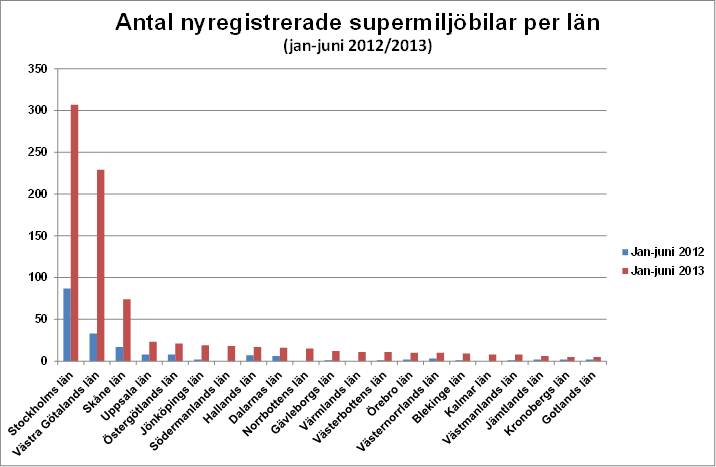 BIL Swedens läns- och kommunfördelade nyregistreringsstatistik för jan-juni 2013 visar följande: