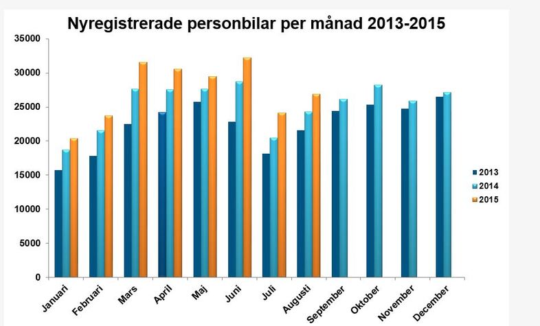 * Augusti 1974 hade högre siffror än augusti 2015, men dessa var påverkade av en köprusch inför en momshöjning och är inte direkt jämförbara med årets augusti.