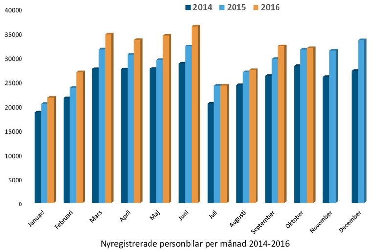 - 2016 kommer enligt vår prognos att bli ett rekordår för nya personbilar, vilket förklaras av den starka konjunkturen i kombination med rekordlåga räntor och ökad privatleasing. Enligt Konjunkturinstitutets senaste mätning av stämningsläget i svensk ekonomi så ökade hushållens förtroende rejält, framför allt för den egna ekonomin, för andra månaden i rad, vilket är en positiv faktor för viljan att investera i t.ex. ny bil. En annan färsk positiv konjunktursignal är Swedbanks inköpschefsindex som ökade från 54,9 i september till 58,4 i oktober, vilket är den högsta nivån sedan april 2011, fortsätter Bertil Moldén.