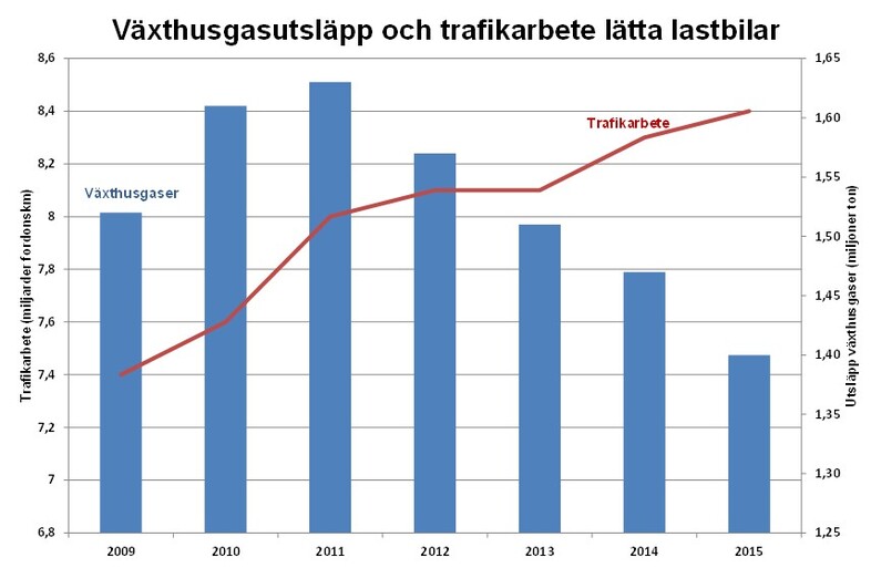 Lätta transporter blir allt energieffektivare och utsläppen minskar