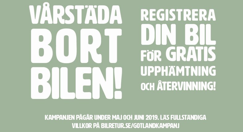 Nu har du som bor på Gotland möjligheten att få din uttjänta bil upphämtad för återvinning utan kostnad. Under maj och juni pågår kampanjen Städa bort din uttjänta bil.