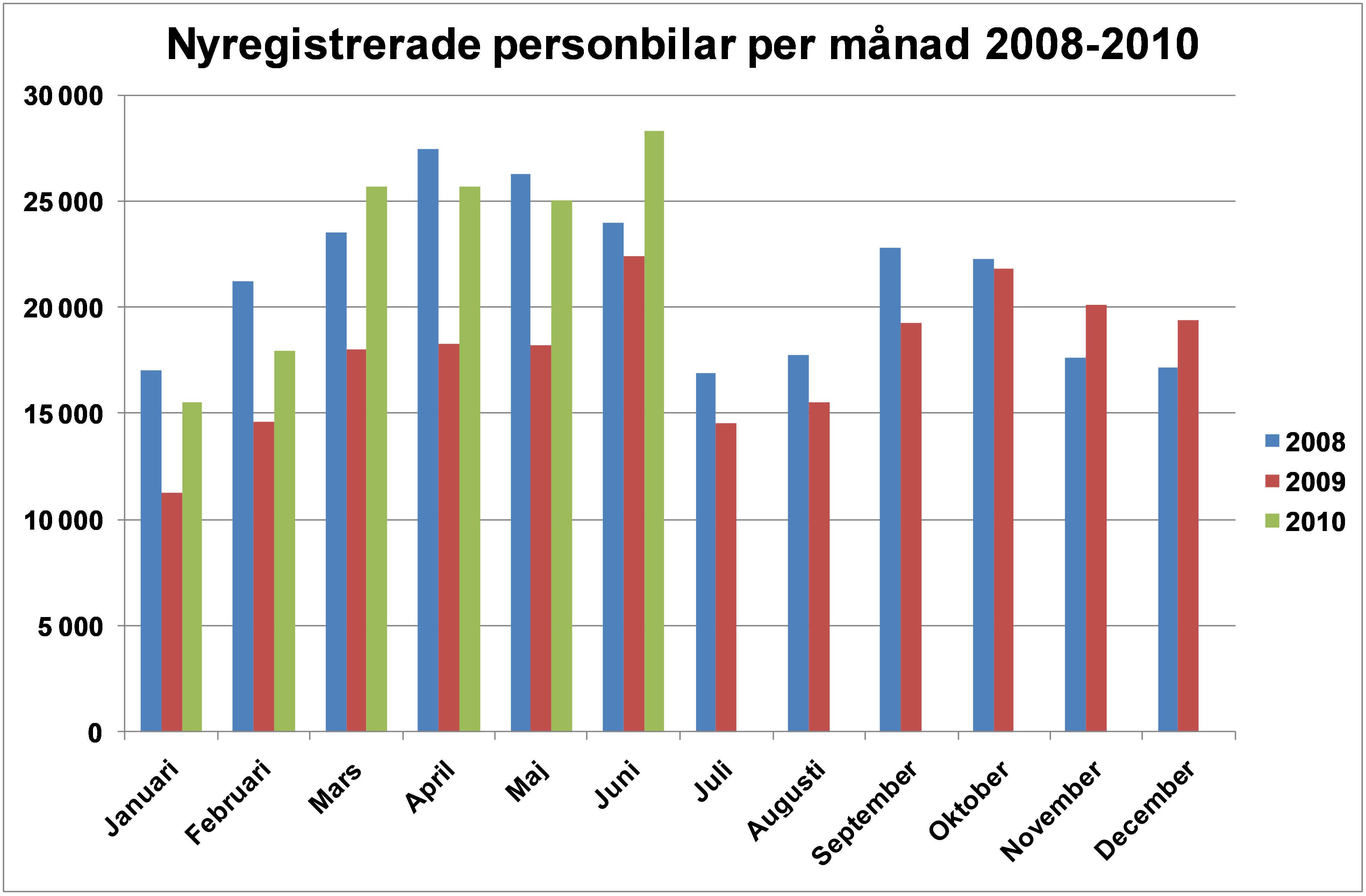 - När vi summerar det första halvåret kan vi konstatera att återhämtningen på fordonsmarknaden efter finanskrisen har gått mycket snabbt, och våra prognoser pekar mot att personbilsregistreringarna ökar med nästan 30 procent och lätta lastbilar ökar med 35 procent i år. Den ökade försäljningen har varit en bidragande orsak till förbättringen av den svenska konjunkturen, säger Bertil Moldén,