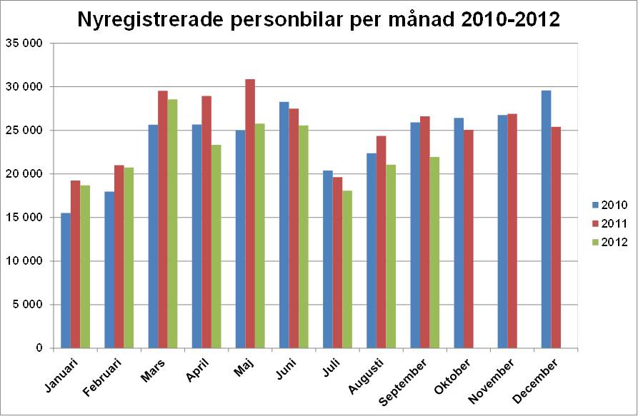 Under september registrerades 21 937 nya personbilar, vilket är en minskning med 17,6 % jämfört med samma månad förra året. Hittills i år, januari-september, har registreringarna minskat med 10,5 %. Lastbilsregistreringarna totalt minskade med 21,0 % under september till 3 691. Hittills i år har lastbilsregistreringarna minskat med 12,6 %. Lätta lastbilar upp till 3,5 ton minskade i september med 22,7 % och tunga lastbilar över 16 ton minskade med 5,9 %. Hittills i år har lätta lastbilar minskat med 13,5 % och tunga lastbilar har minskat med 5,3 %.