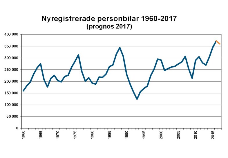 - Rekord för nya personbilar: 372 300 under 2016 - Rekord för nya lätta lastbilar: 51 700 under 2016 - Rekord för nya lastbilar, totalt: 58 200 under 2016 - Prognos för 2017: 360 000 personbilar och 52 000 lätta lastbilar